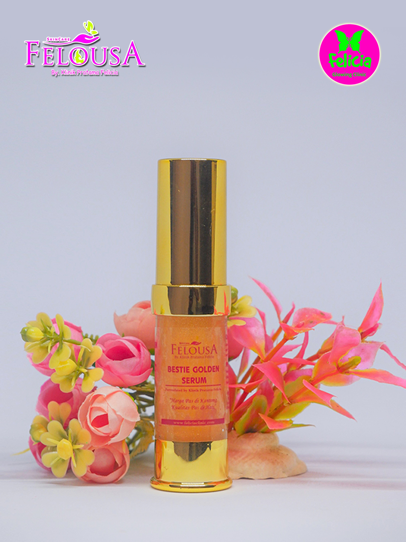 Serum wajah dengan butiran emas yang berfungsi untuk: